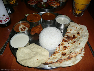 The Punjabi Thali had; Tandoori Chicken, Riata (a bit too sour for me, I didn't like it), Dal (Not as nice as I remember the first time we were here, Quite bland and watery), Mild Paneer curry. Goat curry (The tastiest dish we had), Butter Chicken served with Rice, naan pickle and a poppadom a sweet pudding dish with a creamy rice and nuts. $19.50